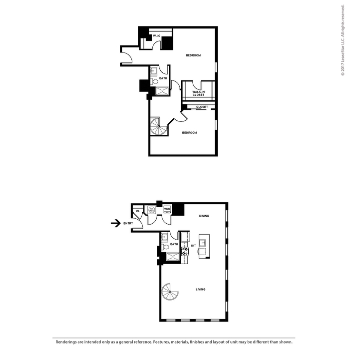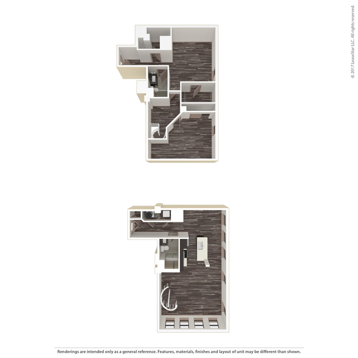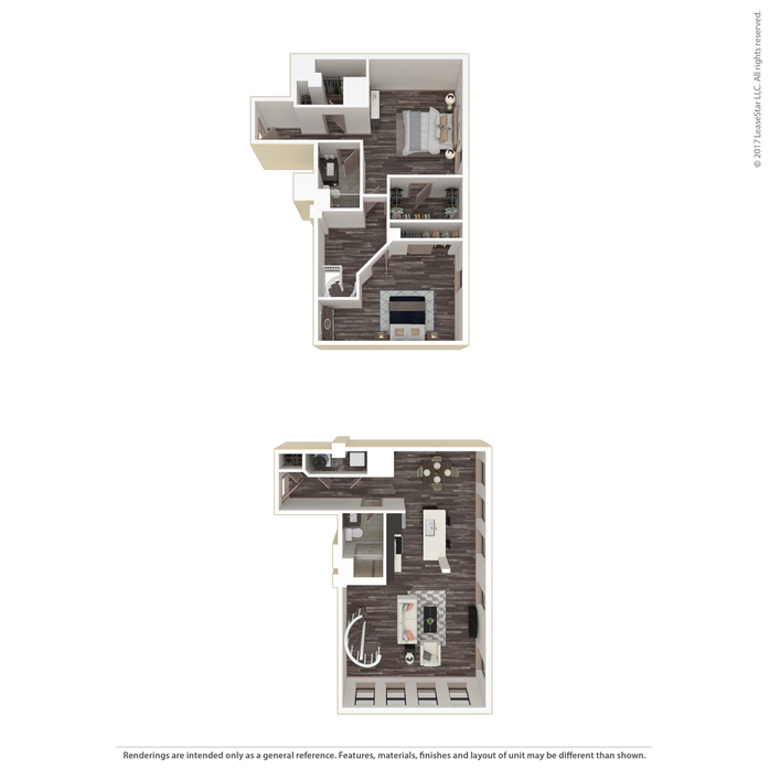 Renderings are intended only as a general reference. Features, materials, finishes and layout of units may be different than shown. For more details, ask a leasing representative about specific apartment features.